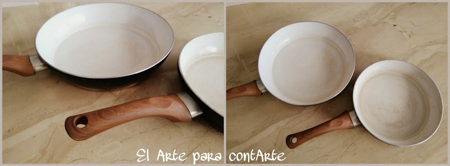 Partimos de este par de sartenes que aparentemente se ven bien, pero vamos, que su función ya no la cumplen, al principio no estaban mal, pero al poco tiempo ya empezó a engancharse la comida, y la verdad es que no sería porque no se cuidaran, ya que en casa nunca utilizamos objetos metálicos con las sartenes. ¡¡Estábamos hartos de las dichosas sartenes!!
