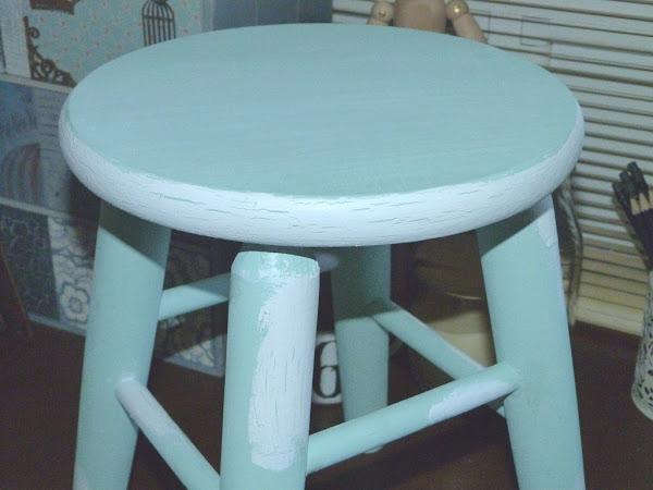 Por último, pinté el resto del taburete en color blanco y lijé para sacar el color de base en las zonas más propias de roce y desgaste.