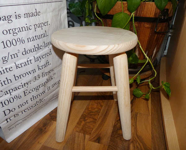 Efectivamente, podemos utilizar papel sobre frentes e interiores de cajones, laterales de muebles, y por supuesto en las tapas, encimeras o sobres. Esta fue la pieza elegida para la demostración. Un taburete de pequeñas dimensiones de madera natural.