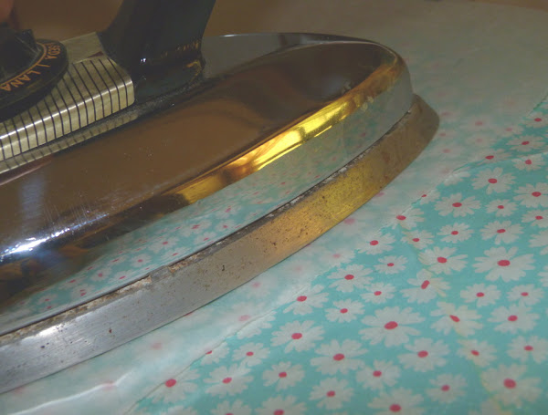 Aplicamos cola de decoupage o cola blanca diluida en agua sobre la superficie que queremos decorar con el papel. En éstas que son amplias y sin relieves, es muy cómodo utilizar la plancha. Para ello, dejaremos secar la cola, pondremos la servilleta cubierta con papel de horno (papel vegetal) y plancharemos a temperatura mínima y sin vapor. A mí me viene estupenda esta vieja plancha heredada de mi abuela.