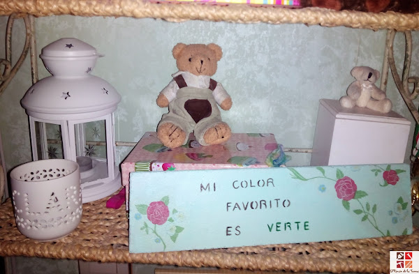 Es un color tan fresco y tan primaveral y que por suerte tengo algunos objetos tuneados, hechos y pintados por mí, integrados en la decoración de mi casa, en concreto en la habitación de mi hija, donde el verde menta es protagonista, así es que paso directamente a enseñároslos.