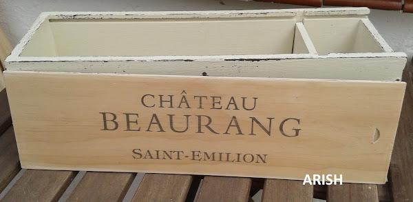 después de un buen lijado la he pintado en marrón chocolate y encima con color crudo, para sacarle el efecto desgastado bien contrastado