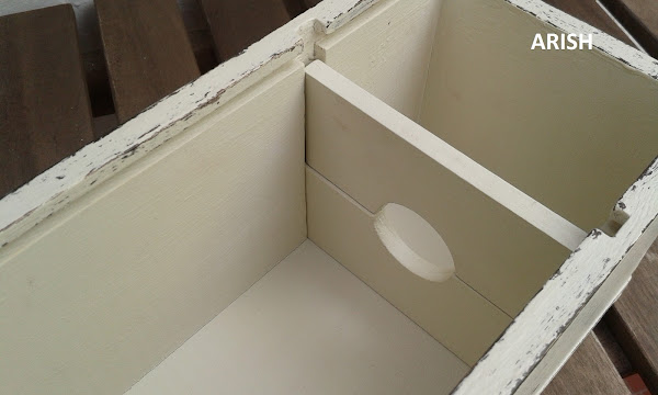 una vez pintada la caja por dentro y por fuera, le he hecho el desgastado por el exterior y he craquelado la otra cara de la tapa