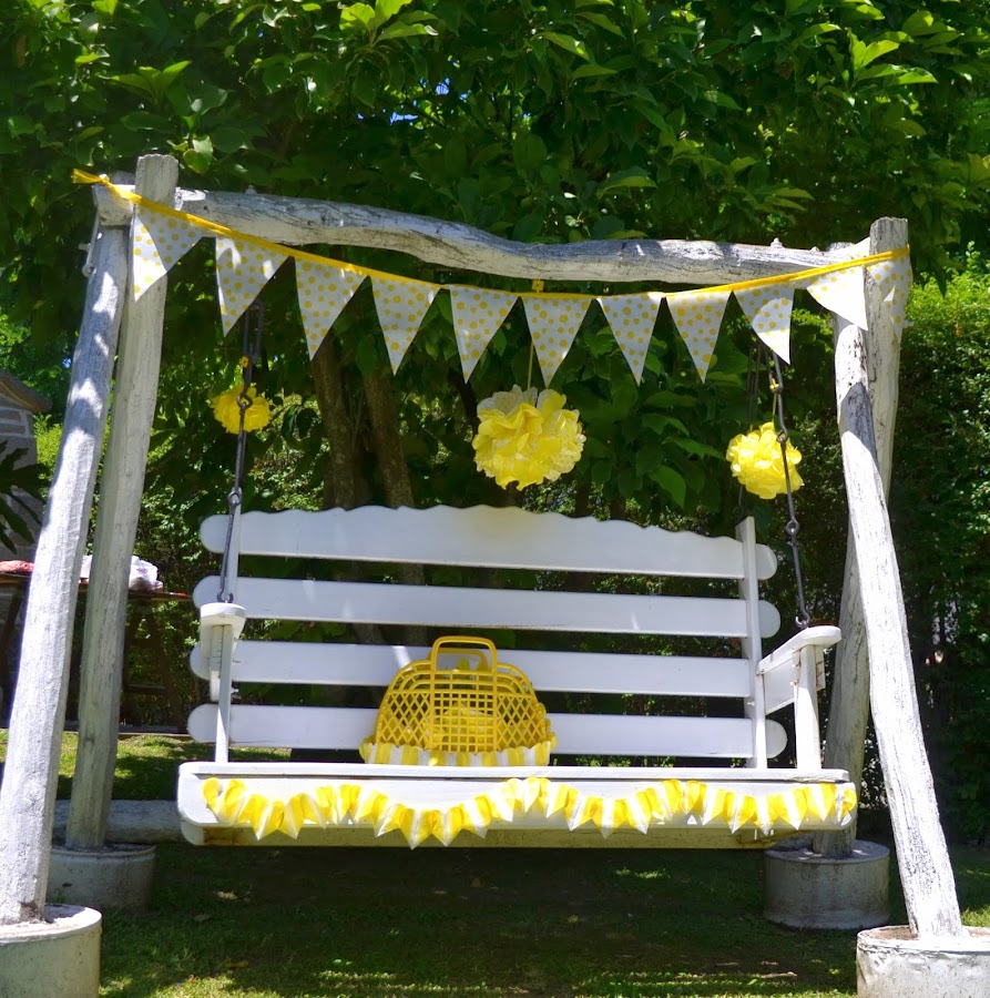 En el sector del parque pequeños detalles para las fotos. Canasta con plantas en su interior y deco en papel.