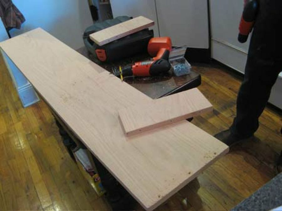 Para ello solo tendremos que adquirir dos escuadras plegables y un tablón de madera que atornillaremos a las mismas.