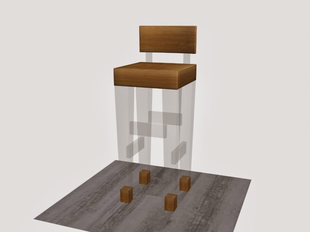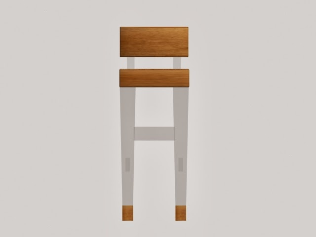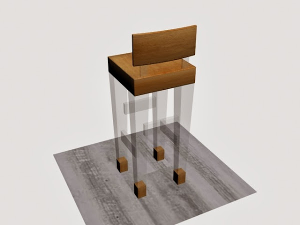 Se trata de un taburete con respaldo que tendría las patas en policarbonato transparente y el respaldo, asiento y base de las patas en madera.