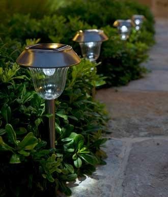 - Para la entrada y los caminos, podemos emplear tiras de led, lámparas solares, balizas...
