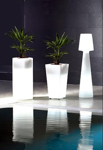 - Luces ambientales. Se emplean, además de para iluminar, para crear diferentes ambientes, generar contrastes y, en definitiva, para decorar con estilo. Así, podemos encontrarlas de diferentes diseños, como maceteros, bolas, columnas... Además, pueden ofrecer tanto luz blanca, amarilla como de varias tonalidades.