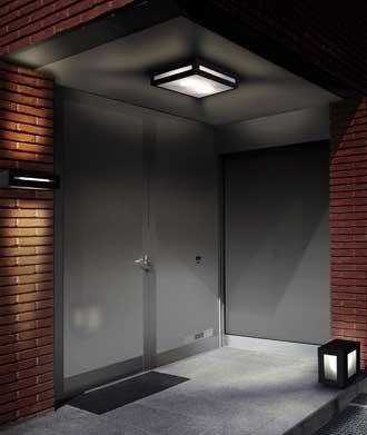 - En las entradas, además, podemos instalar lámparas colgantes, plafones e, incluso, detectores de presencia.