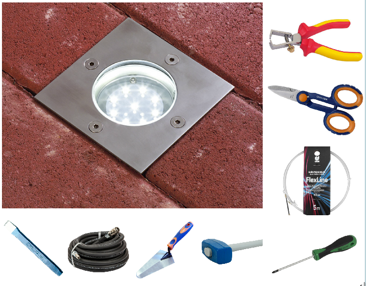 Otra posibilidad es iluminar desde abajo, es decir, desde el suelo, a partir de focos empotrables que podemos instalar en terrazas, senderos... De esta forma, hoy vamos a ver los pasos a seguir para instalar unos focos empotrables para hormigón, aunque también hay modelos para suelos de tarima, césped... Pero antes, vamos a anotar los materiales necesarios: