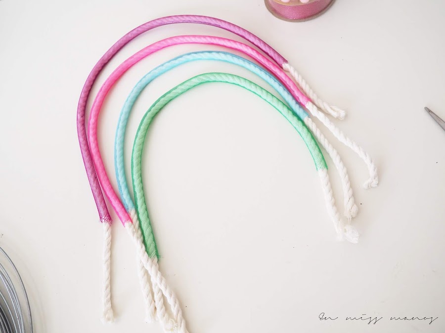A continuación cada arco lo enrollé con un tipo de lana y color diferente.