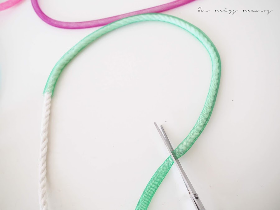 Se cortan los tubos de plástico de manera que sobresalga la cuerda por ambos lados.