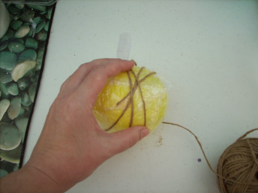 Ahora vamos enrollando nuestra cuerda alrededor del globo.