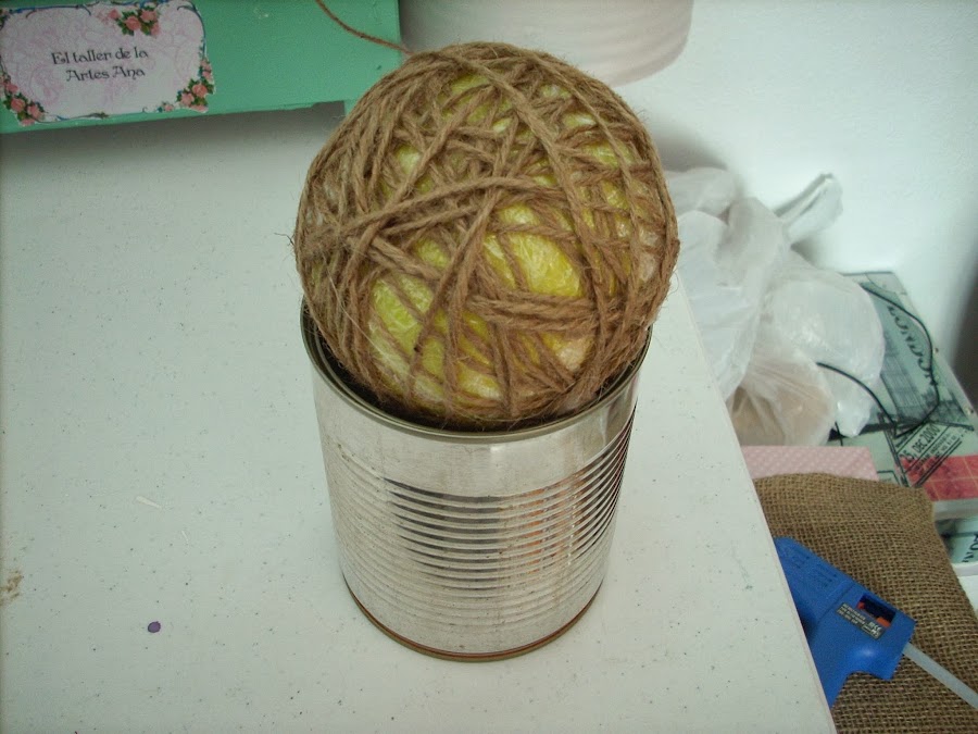 ¿Bonita verdad?. Una idea que creo que quedaría muy chula es mezclar el aguacola con un poquito de purpurina, así al secarse la cuerda tendría unos preciosos reflejos. He pensado que voy a hacer unas cuantas de distintos tamaños y dentro voy a ponerle una guirnalda de leds para utilizarla como decoración navideña.