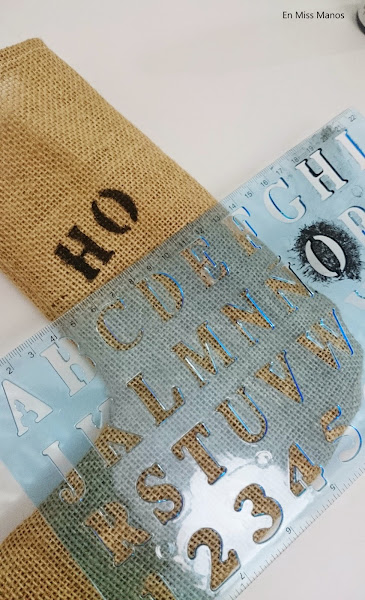 - Con alguna plantilla de letras, dibujos, etc, lo que prefieramos, y pintura para tela, se hacen los estarcidos.