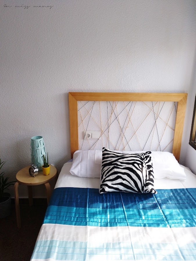 El marco en sí estaba perfecto, y aprovechando que el otro día pinté por fin la habitación de trastos para hacer una habitación en condiciones y poder subirla a Airbnb, no se me ocurrió cosa mejor que hacer de él un cabecero de cama, porque justo me encajaba con las medidas.