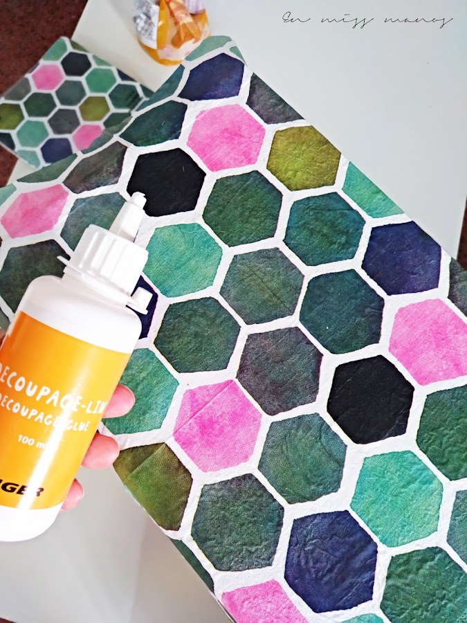 Antes de colocar las servilletas, pinté los laterales de color blanco, para que resaltaran más los colores de la servilleta.
