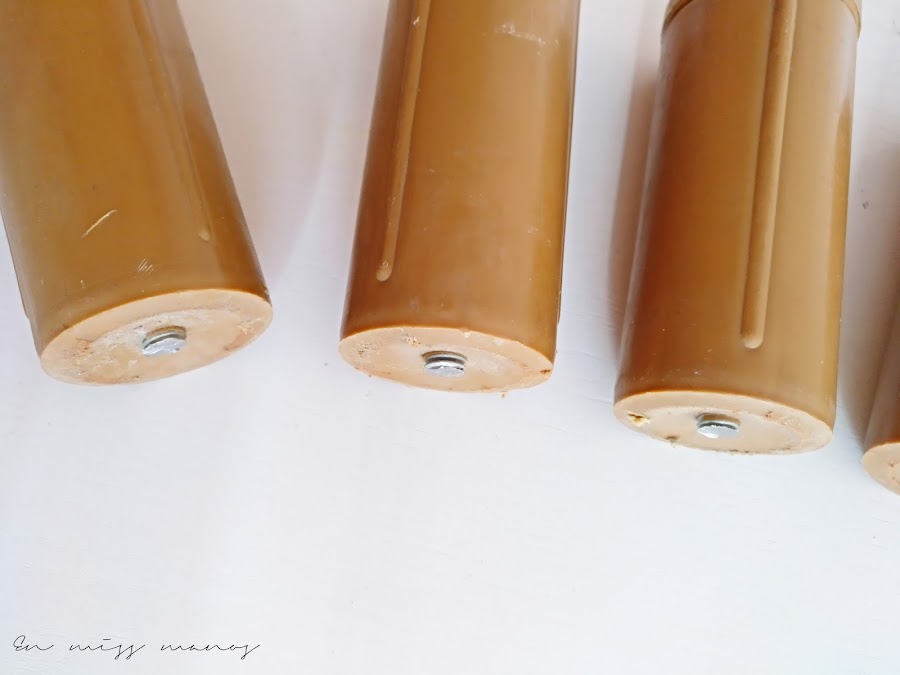 De hace ya tiempo tengo guardadas un montón de patas de varios tipos que me encontré en su momento en un contenedor, así que aprovechando que de este tipo tenía varias y no eran muy altas, se le cortaron los tornillos que venían en ellas y las pinté con spray color blanco.