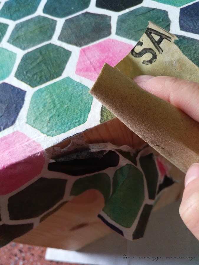 Cuando ya está seco, lijamos por todos los bordes y se queda un borde perfecto.