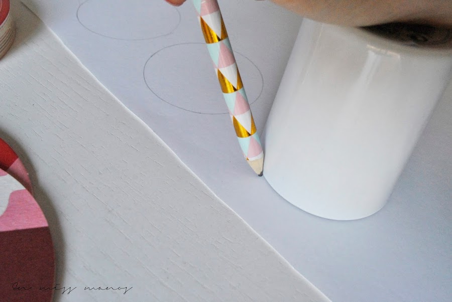 Una vez cortadas les escribí el número con rotulador fino y con pegamento de barra los fui pegando alternamente en el centro de cada posavaso.