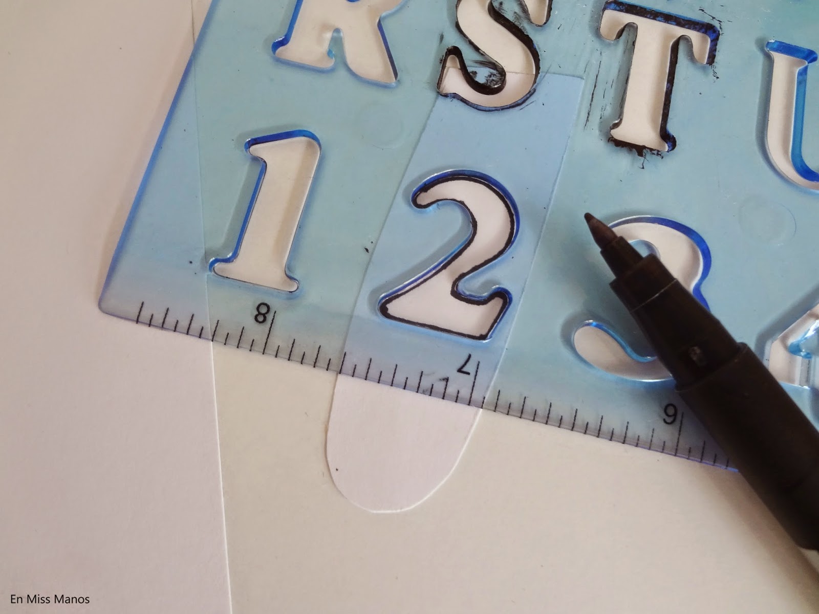 Una vez cortadas las formas en la cartulina se van marcando los números con la plantilla y se rellenan con el rotulador.