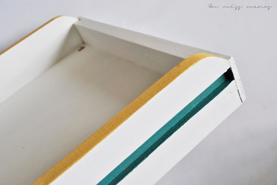 Y los bordes superiores de los laterales, los pinté (con mucho pulso) y pintura del tono Sunlight.