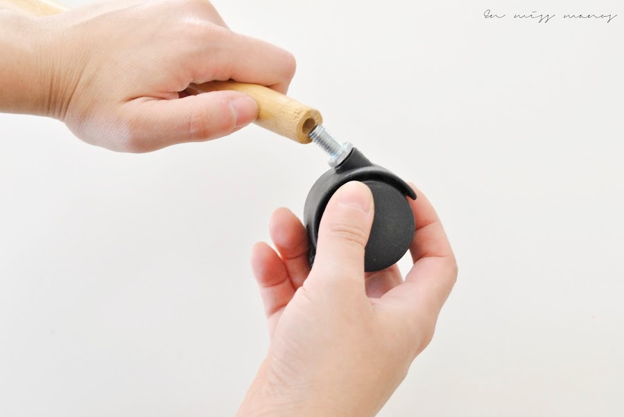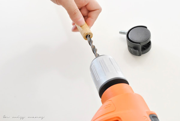 Lo siguiente que hice fue agujerear las cuatro varillas por su parte de abajo con la broca adecuada para el grosor del tornillo de las patas, que irían metidas al final de todo el proceso a modo de rosca.