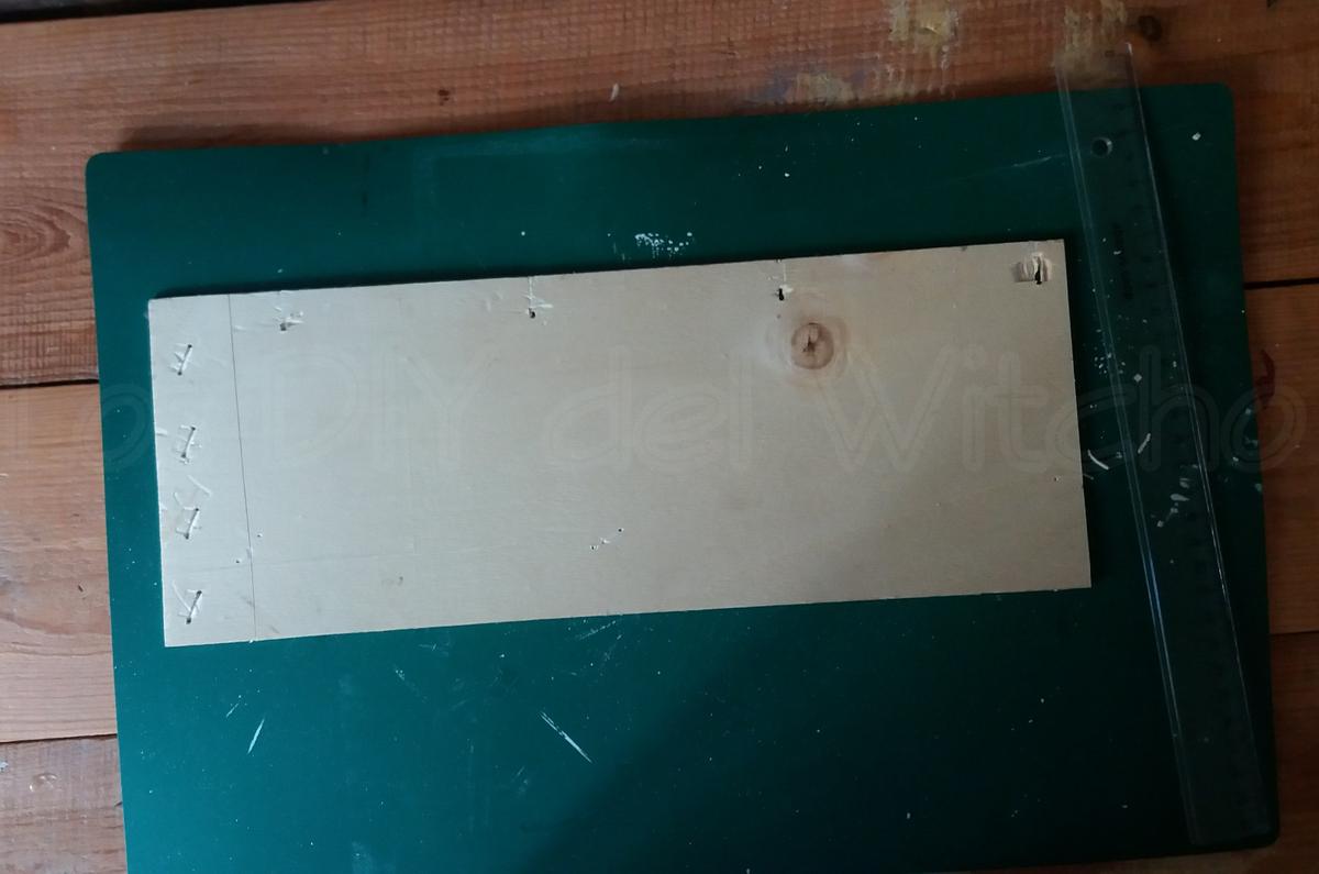 Los agujeros los haremos desde la cara en la que hemos pegado el papel decorado, para evitar que este se rompa.