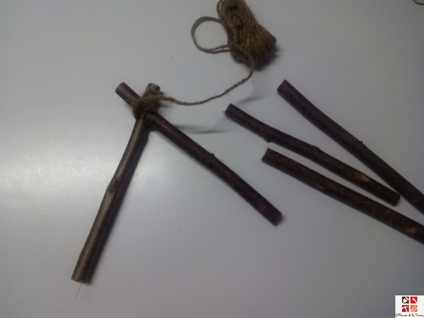 Después con una cuerda de yute vamos uniendo los trozos atándolos y dejando el nudo visible para que tenga un aspecto más rústico.