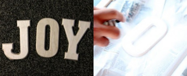 Igual con las letras "JOY" en este caso se ha buscado el contraste oscureciendo la madera, y pintando las letras con spray color plata.