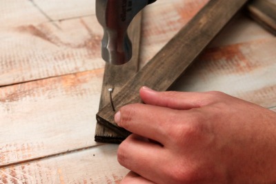 Después, una vez ha secado todo llega el momento de montarlo todo. Para ello forma la estrella y clava las esquinas entre sí. Se utilizan dos clavos por cada esquina, matando o cortando las puntas por la parte trasera de la estrella.