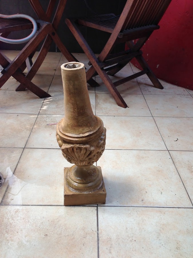Ayer, impaciente me puse manos a la obra. Lo primero que hice fue limpiarla con un cepillo y lejía. Tendría polvo y porquería de varias décadas así que me estuve un buen rato frotando. Cuando acabé le pasé la manguera y la dejé secar.