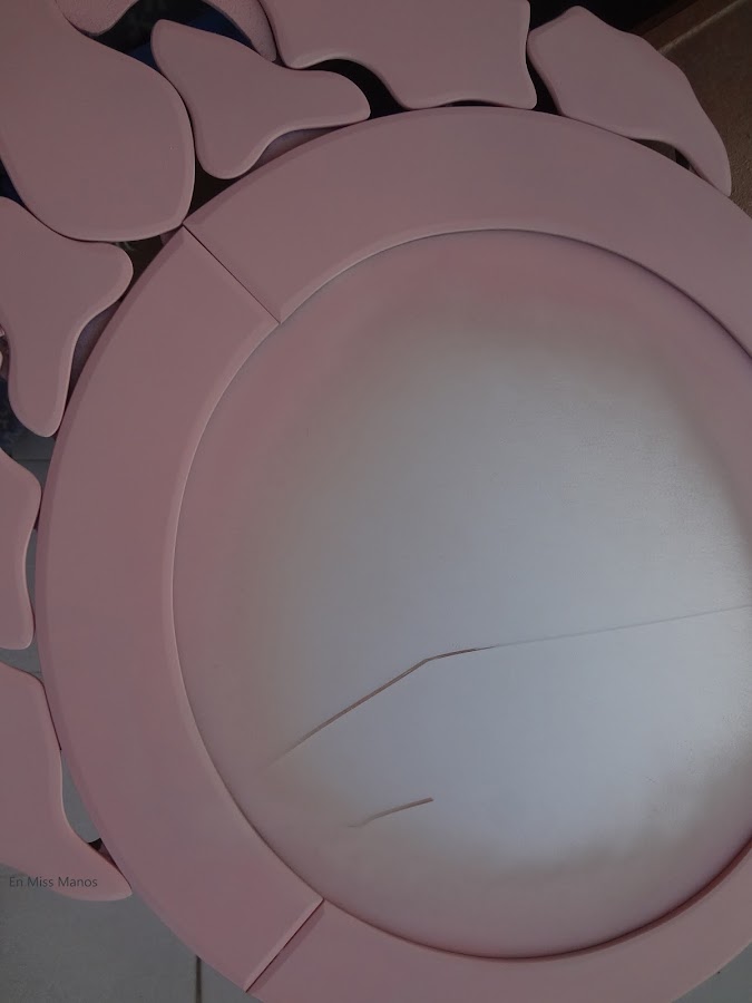 Me sobró spray chalk paint de mi anterior proyecto de los Clipboards y usé el color rosa pastel, o ya que este año es su año Pantone y tendencia...el Rosa Cuarzo, para pintar el marco de alrededor.