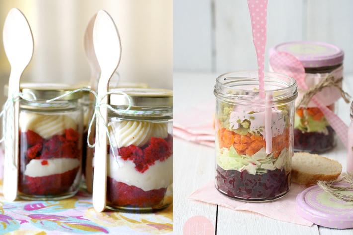 Por último, podemos usarlos para servir el postre o un plato para una fiesta, además de ser original, si mantienen la tapa puedes dejarlo preparado con tiempo y se conservará mejor. O si no puede ser para las bebidas, una forma divertida y original de convertir un bote de conserva en un vaso por los cócteles o los jugos que dejará a todo el mundo sorprendido.