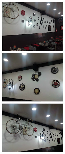 Cuando los fines de semana nos quedamos a cenar por ahí, solemos ir a un bar donde aparte de comer bien y económico , es muy amplio. Lo ha abierto hace poco y lo ha decorado el dueño sólo, está lleno de carteles con frases inspiradoras y de relojes y hasta tiene una bicicleta colgada en el local. Más abajo os pongo fotos del local para que lo veáis.