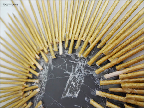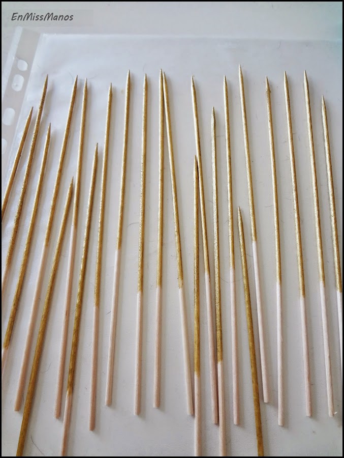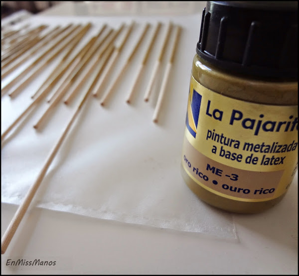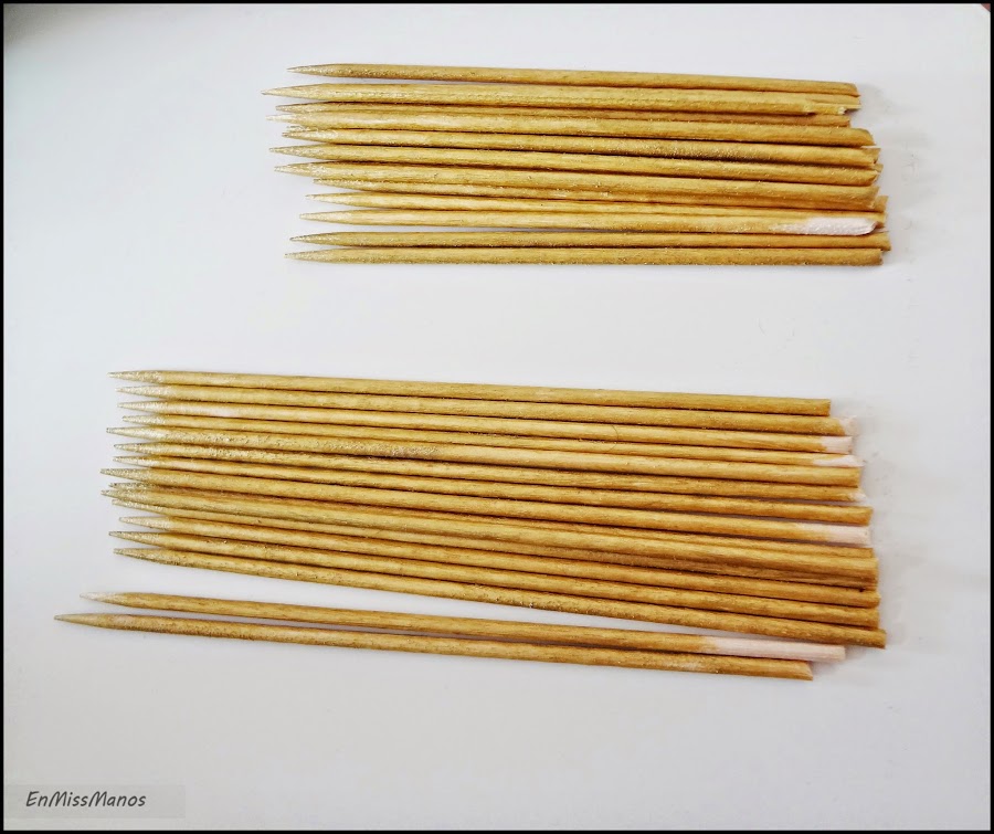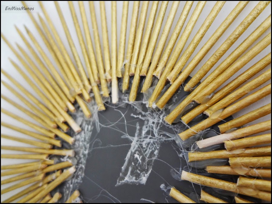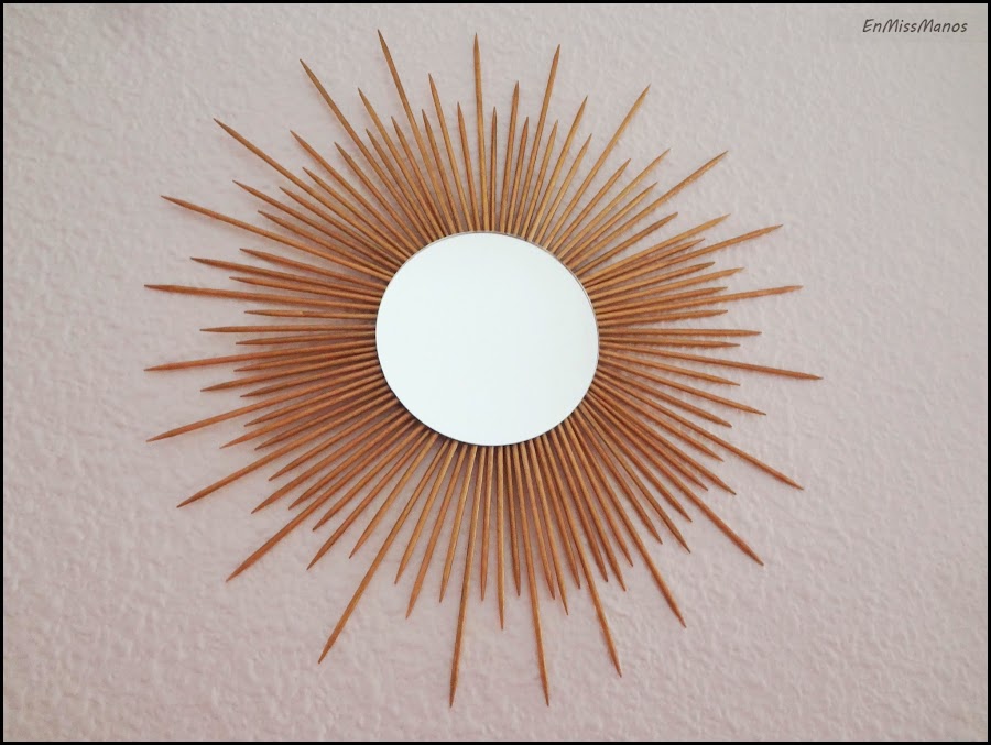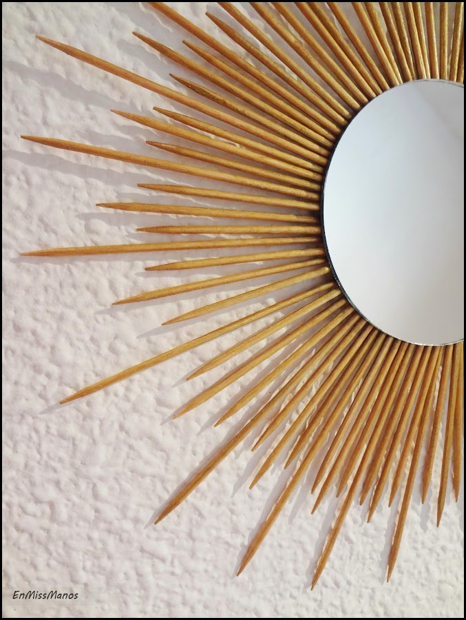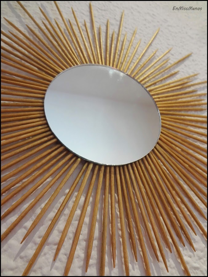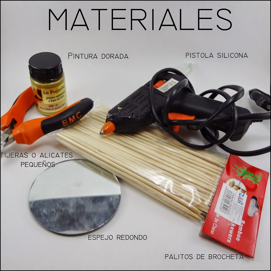 Hace unas semanas me cogí de casa de mi madre dos espejitos redondos que aún estaban en mi habitación, y se encendió la bombilla. Una cosa menos para comprar, solo tuve que comprar las brochetas, porque la pintura también la tenía en casa!