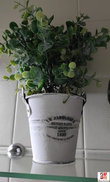 Tenía rodando por casa este cubo color plateado y hace ya tiempo lo pinté con dos manos de pintura a la tiza lijando entre una y otra y resaltando el color plateado. Lo guardé porque no sabía como ni donde ubicarlo.