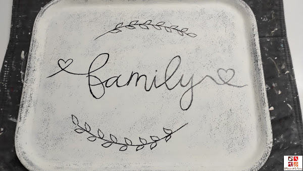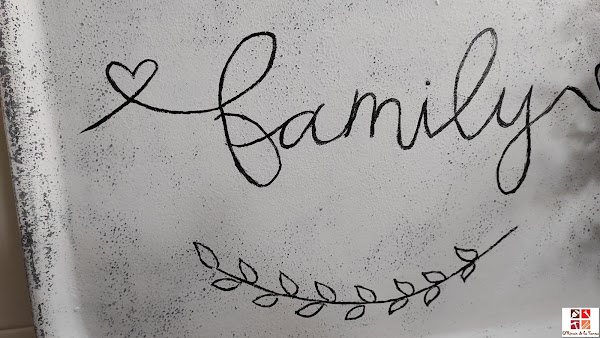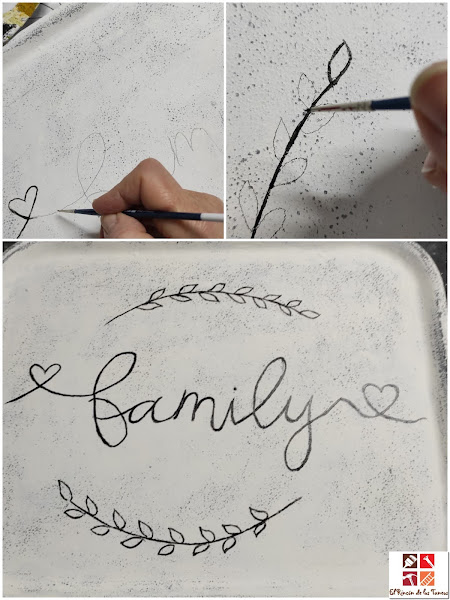 He pintado a mano alzada la palabra family y unas ramas de olivo.