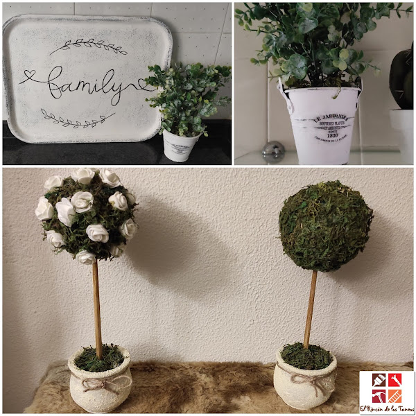 He hecho no uno, ni dos diys, sino tres para los dos temas; al principio y después de la lluvia de ideas que tenía y queriendo unificar todo tenía otros trabajos planteados pero no pude por falta de tiempo, así es que fui haciendo e improvisando y aunque no he logrado hacer una composición decorativa con los tres trabajos en el mismo entorno, que es lo que a mí me gusta, van por separado, pero...van...que era lo que deseaba. Un diy para deco farmhouse y otro para primavera.