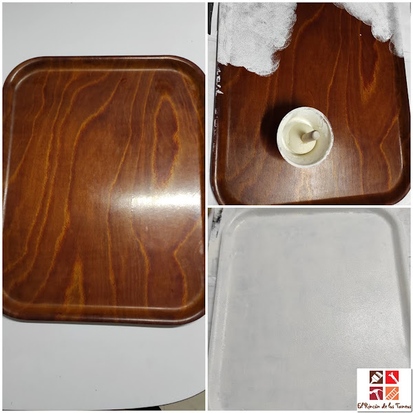 He reciclado una banjeja de las típicas de los bares (compré a un precio irisorio una docena) y es la primera que tuneo, así es que chicas, decidme ideas para otros trabajos.