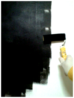 Una vez delimitado con la cinta de carrocero, comenzaremos a pintar con la pintura pizarra de color negro, con el rodillo de espuma, también se puede pintar a brocha si queremos, pero el resultado es mas perfecto y profesional con el rodillo.