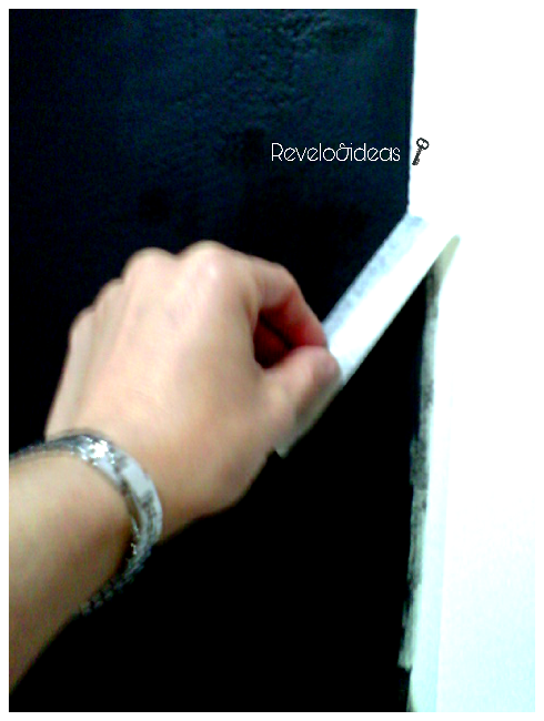 Delimitaremos la pared con cinta de carrocero, para no manchar la pared que no va pintada de pizarra.