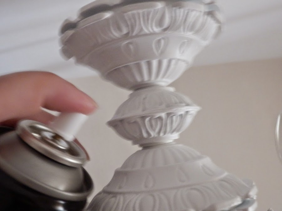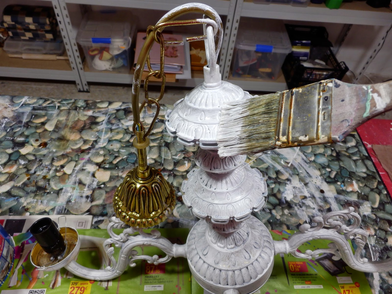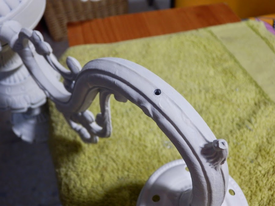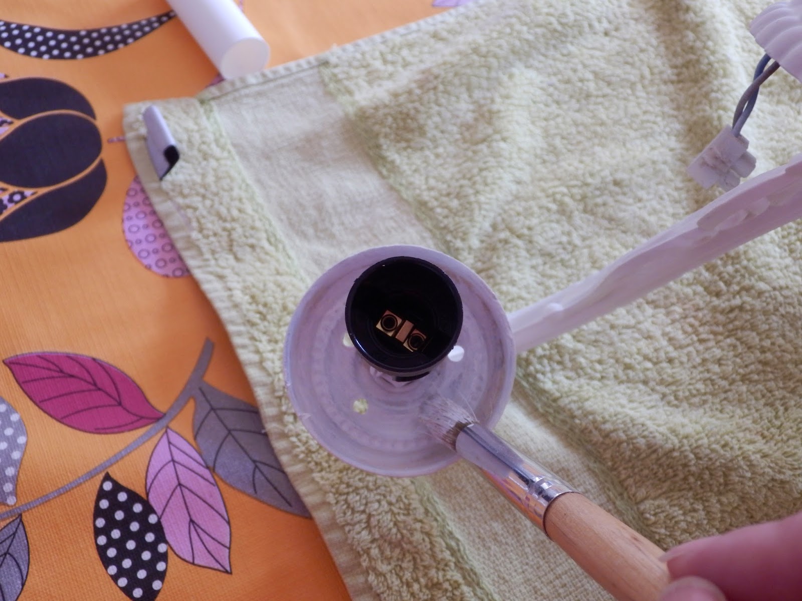 Pinté el interior de la base de la tulipa. Esta vez con brocha fina para no pintar el casquillo.