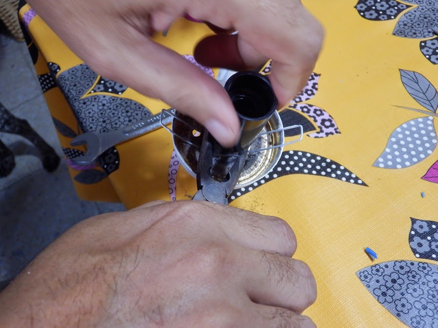 Luego tocaba cambiar los casquillos ya que como era otro el sistema que iba a utilizar los que tenía no me venían bien. Esta parte la hizo mi chico ya que yo aún no me he puesto al día con el tema eléctrico.