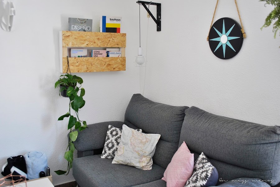 Lo he colocado justo encima del sofá para colocar los libros de diseño, etc y tenerlos a mano.