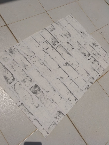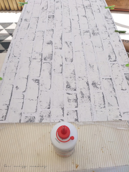 Les repartí cola por los tres laterales visibles para colocarles papel de pared con efecto ladrillo.