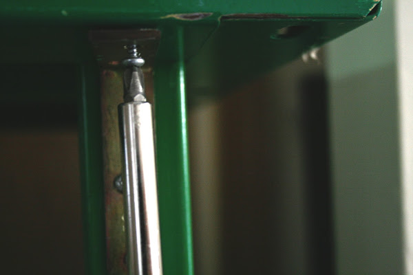 Así que como le regalé a Pedro este verano una mesa de trabajo (muy parecida aquí) esta ya no le hacía falta. Así que investigué e investigué para ver que podría hacer con ella. El estilo industrial me inspiró y esta gran idea que, además, me va a ser muy útil.