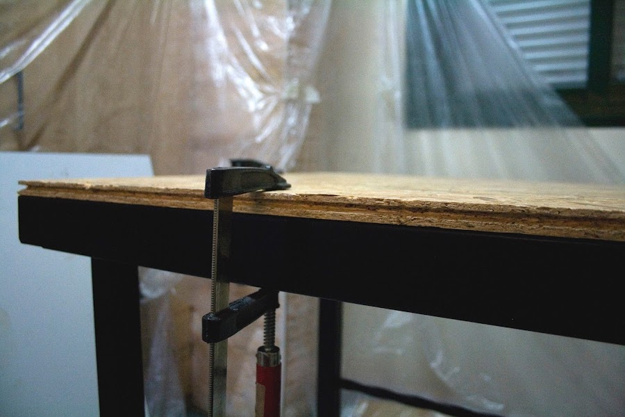 10. Dejamos durante un día secar con los gatos para que ejerza presión sobre la tabla y así aseguramos que quede bien pegado.