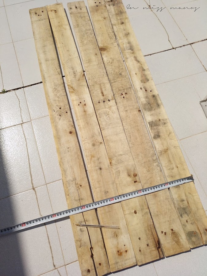El caso es que como estuve todo el verano, otoño, invierno...ahí fuera, con tanta lluvia acabó abriéndose. Así que este año decidí hacerle una base con listones de palets desmontados que tenía.