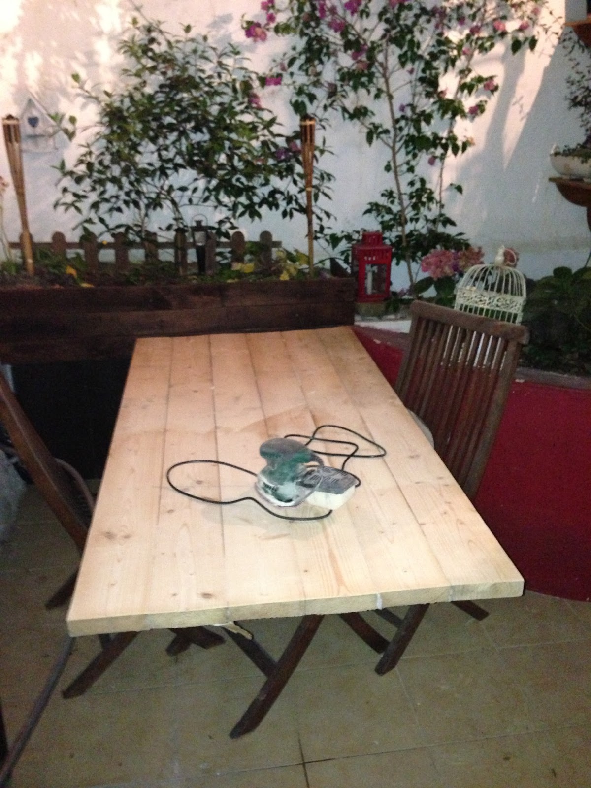 En primer lugar hice el sobre. Las maderas eran un regalo y lo cierto era que estaban bastante rectas para ser tableros de construcción, aun así tenían imperfecciones por lo que sí o sí iba tener que trabajar duro con la lija. Pero no nos adelantemos. Lo primero fue cortar los seis tableros a la medida deseada (1,65cm) y luego pegarlos entre sí con cola de poliuretano.